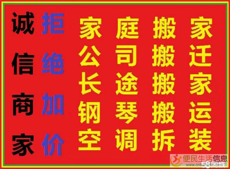 搬家服务:个人搬家、居民搬家、按摩专业拆装衣柜、家私组装打包;居民搬家:长短途搬家、家具拆装、洗衣机、浴缸、搬易碎品打包服务;公司搬迁:搬写字楼,免费上门报价;工厂搬迁:专业搬厂、搬机器、卸货柜、大型仪器吊装、重型设备移位、上楼下地下室等;空调服务:专业的空调技工,提供空调拆移机、维修、加雪种清洗、保养;货车出租:长短途运输、货物装卸、钢琴搬运:搬迁、运输,...